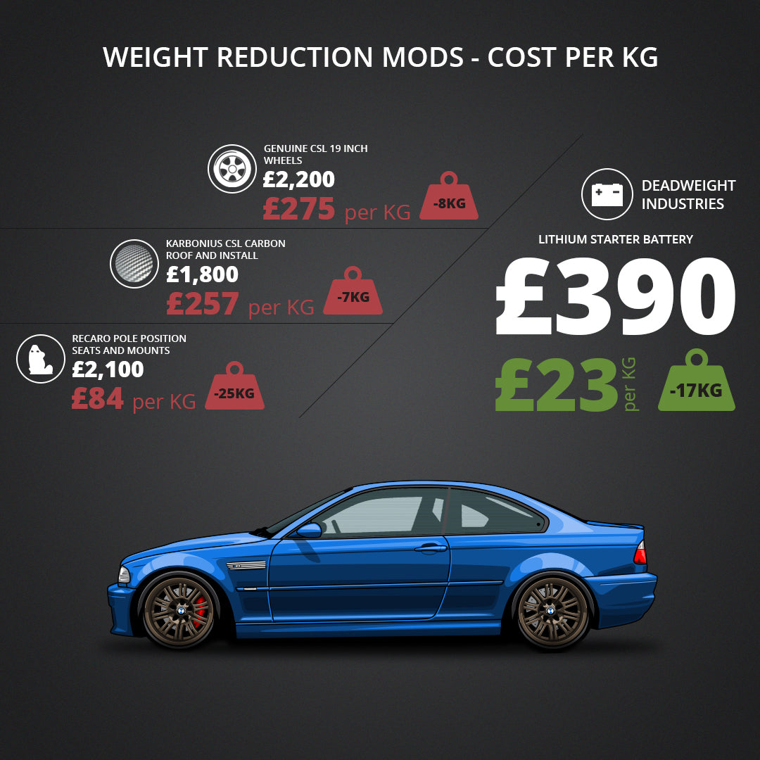 At a cost of $44 per kg saved, its far better value than many other light weight mods.